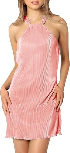 Halter Dresses for Women 2024 Summer Casual Sleeveless Trendy Ombre Short Dress