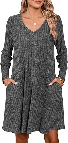 Women Plus Size Sweater Dresses V Neck Long Sleeve 2024 Casual Fall Winter Tunic Dress with Pockets