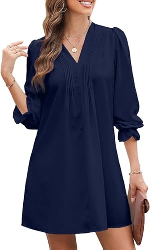 Womens Fall Summer Tunic Dress Casual Loose Short Sleeve Crew Neck Flowy Swing Mini Shift Dresses